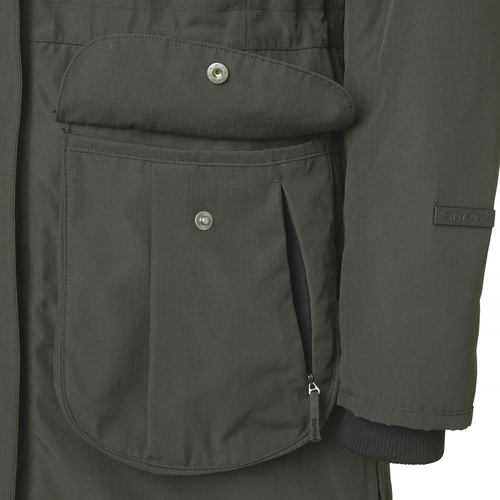Chevalier Tempest Women's Jacket is a warm padded long shooting jacket with design elements to make it blend in to any town or city setting. Equally at home on the peg, on the hill or on the High Street, the Tempest women's Jacket by Chevalier features a multitude of pockets, including large cartridge pockets, a hidden rear game pocket, handwarmer pockets, twin radio pockets at the shoulders and side-entry zipped pockets on the outer of the bellow cartridge pockets. On warmer days, you'll be able to utilise the jacket's useful inner suspenders that enable you to hang the jacket from your shoulders while still being able to use both hands. There are side zips allowing the jacket to be worn comfortably when in the saddle. A beautifully warm long women's hunting jacket for outstanding performance in any environment.