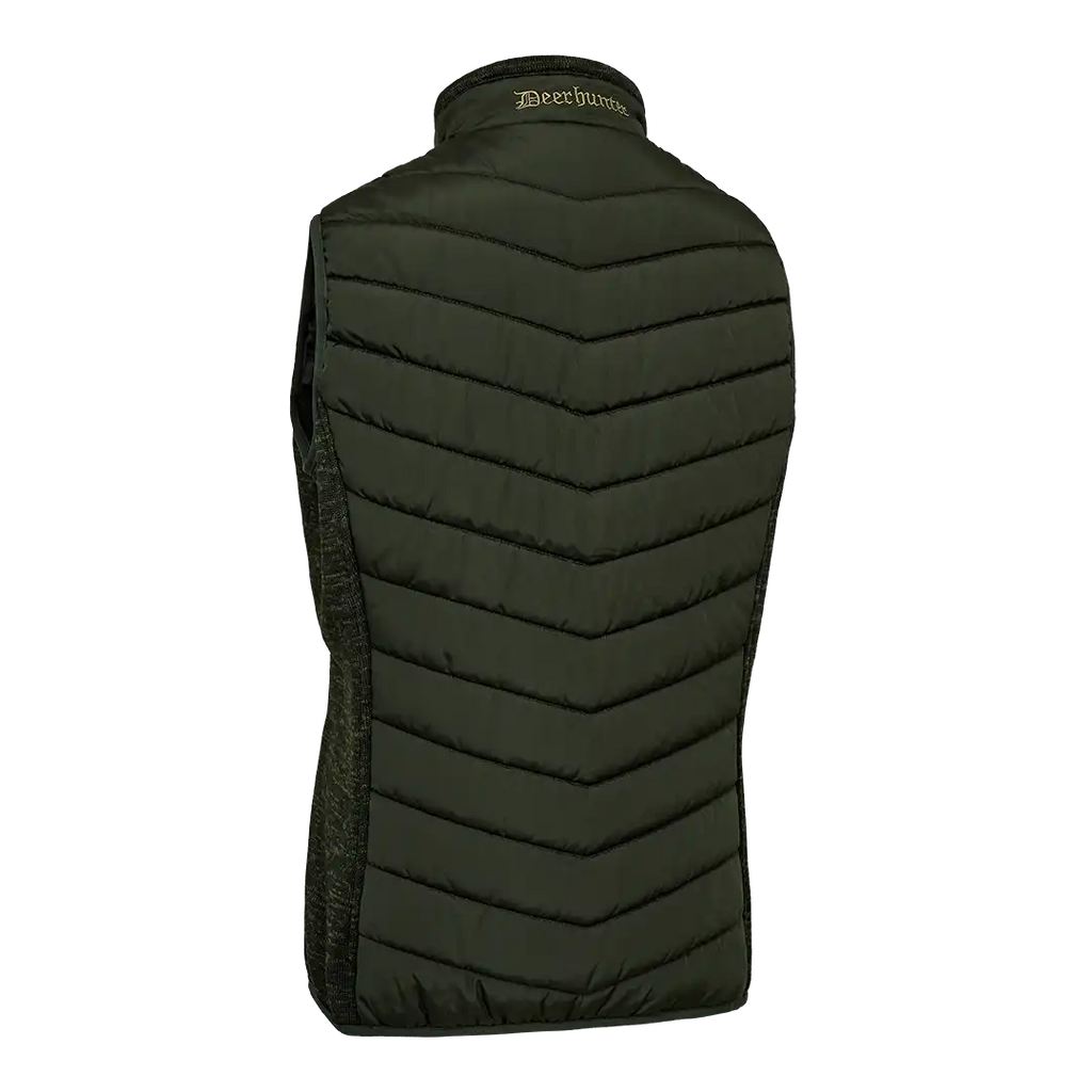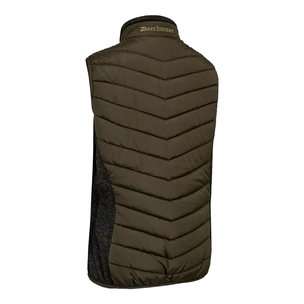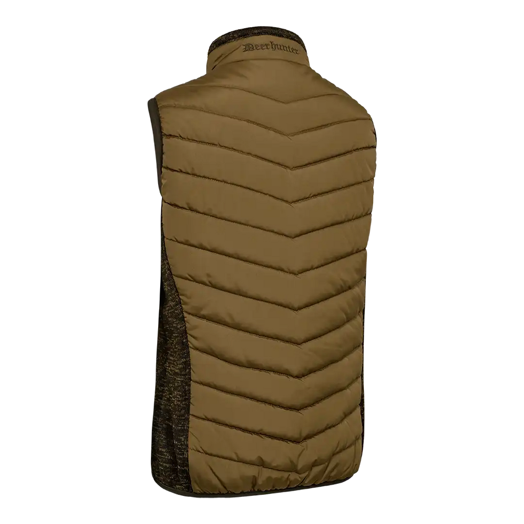 Designed with active country living in mind, this ladies’ padded gilet includes 2-way stretch knitted side panels and shoulders that gives you unrestricted movement while gently shaping the waist for a flattering silhouette. Elasticated armholes and hem help trap warmth and block out chilly breezes, while two zipped side pockets and a handy chest pocket keep your essentials close at hand. Finished with the classic Deerhunter logo and contrast zip detailing, this women’s outdoor gilet brings together performance, style, and comfort for everyday countrywear.