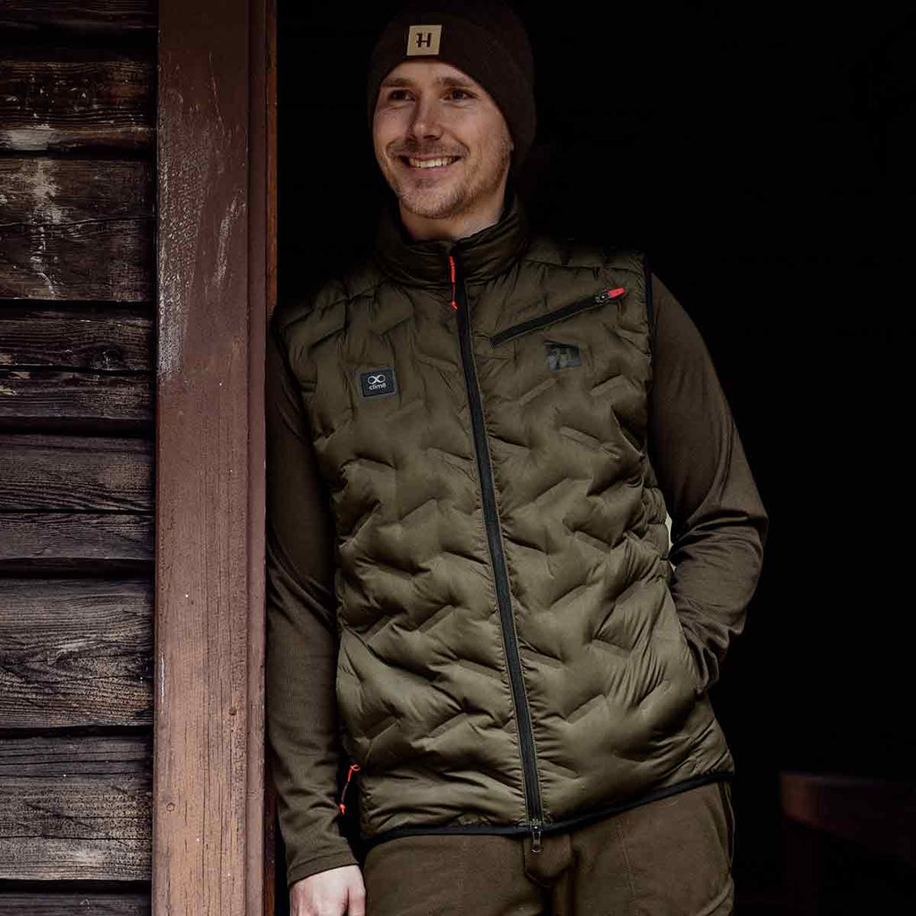 The Härkila Clim8 Insulated Waistcoat is a wind resistant and intelligent self-regulating electronically-heated vest for men. Perfect for all-day warmth. Everything is controlled by the set-and-forget clim8® app. The app is only required during the set-up process and once the product has been paired, your personal profile will be transferred to the jacket, and your custom settings applied. The app can also be used to fine-tune the temperature as required.
