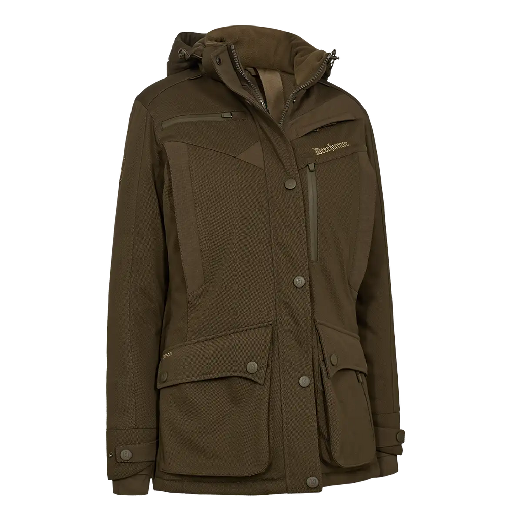 Deerhunter Lady Muflon Pro Winter Jacket is a waterproof, insulated women’s shooting jacket designed for stalking, shooting, and all outdoor country pursuits in cold, wet weather. With advanced insulation and a thoughtfully tailored design, this winter hunting jacket keeps you warm, dry, and comfortable through long days in challenging conditions.