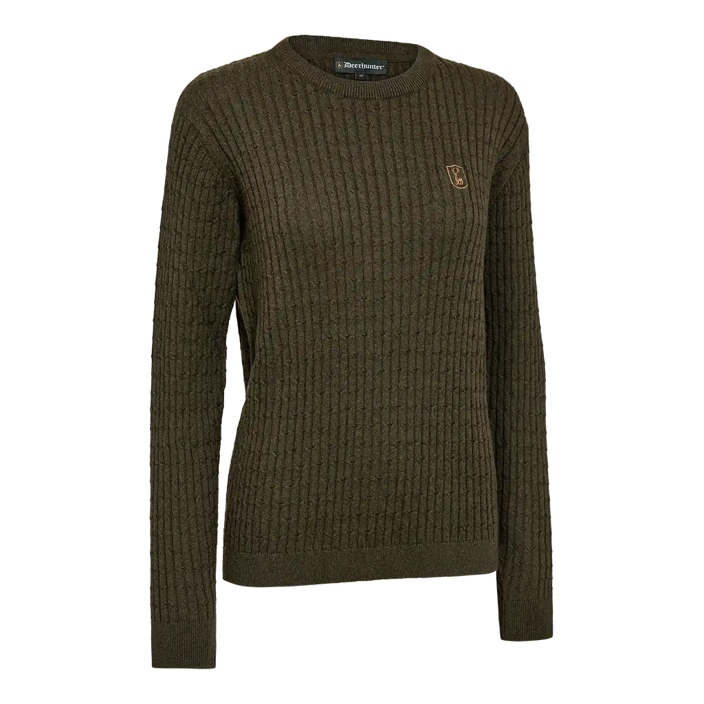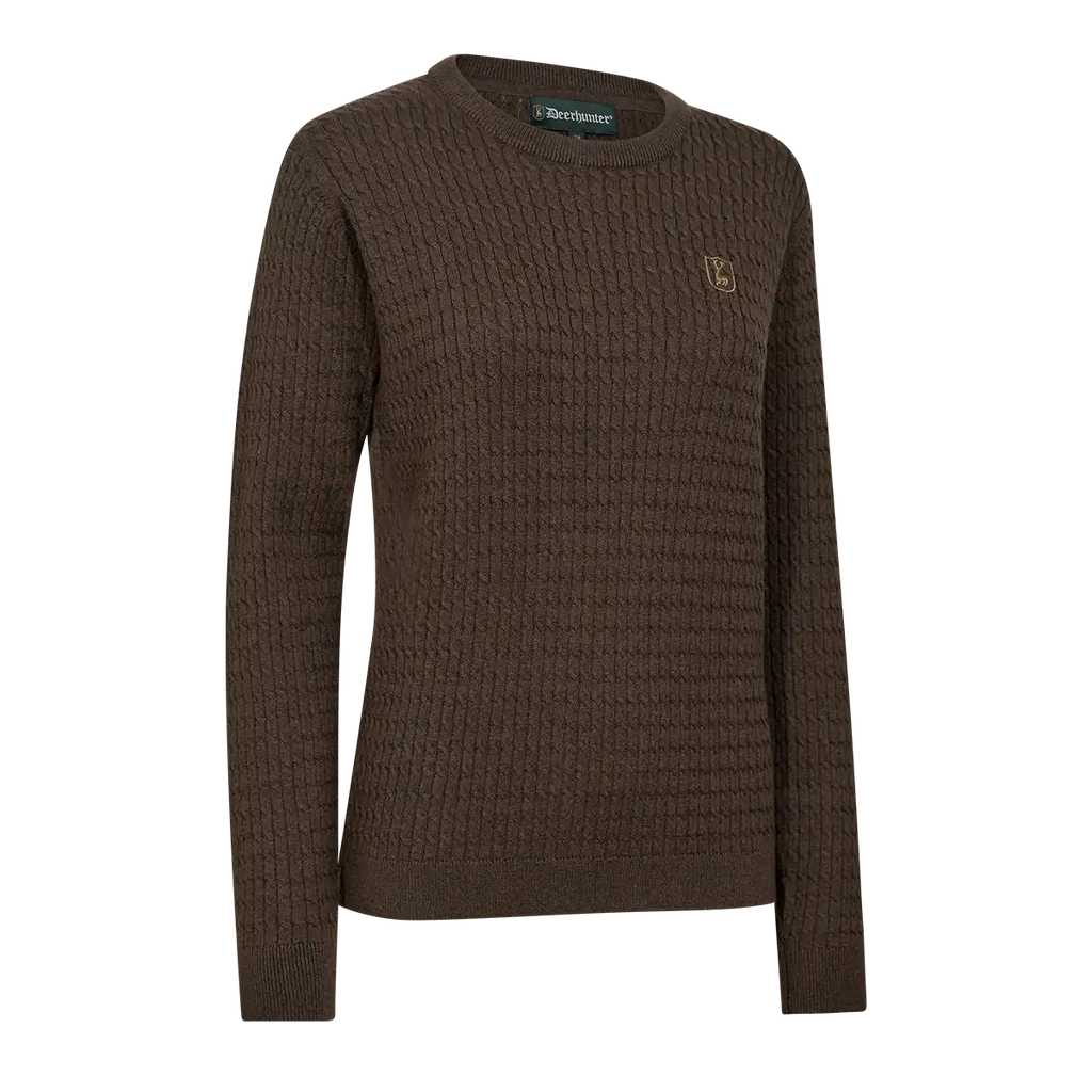 With a fine Gauge 12 cable knit construction, this ladies' knit jumper provides lightweight warmth without bulk, making it easy to layer under a gilet or jacket. Whether you're heading into town or out on a dog walk, the Lady Harrington brings comfort, practicality and timeless country charm. Finished with an embroidered Deerhunter logo on the chest, it's a versatile knitwear staple you’ll reach for again and again.