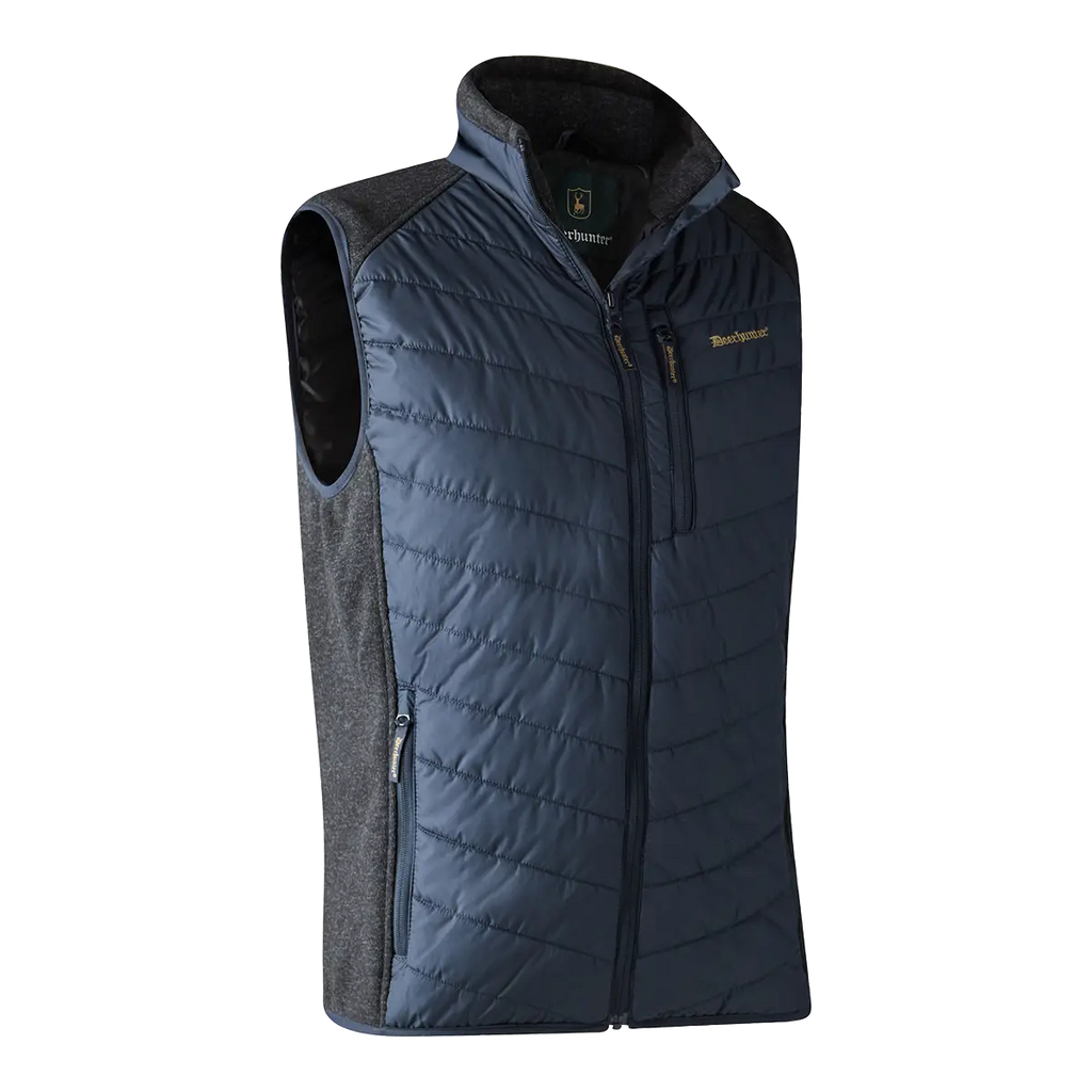 Deerhunter Moor Padded Waistcoat w.knit is a contemporary looking warm padded men's gilet with stretchable soft fleece knit sides for comfort and ease of movement. The core areas of this Gilet are lined with soft packable insulation which retains the warmth even when wet without unnecessary bulk or weight.