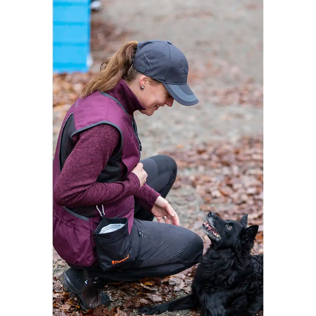 The Pinewood Dog Sports Treat Bag is a durable, windproof and waterproof dog training treat bag designed for convenience during obedience training, dog walks, or agility sports. The hands-free treat pouch features a quick-access magnetic closure and a detachable hook that easily clips onto a belt, D-ring, or bag, keeping treats secure and within easy reach while active with your dog. Treated with Bionic Finish® Eco for sustainable water resistance, this lightweight dog training bag will keep your treats dry whatever the weather.
