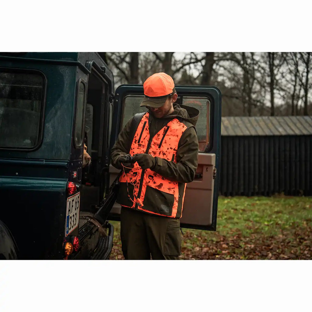 Seeland Trax Blaze Waistcoat is a CE-approved men’s high-visibility hunting waistcoat, perfect for driven hunts, dog handling, and shooting. Made from durable Oxford canvas, this blaze orange waistcoat features expertly developed InVis® camouflage, blending effective concealment with maximum visibility to keep you safe in the field.