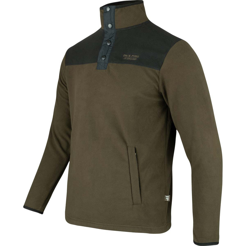 Jack Pyke Snap Neck Fleece Top is a lightweight men’s fleece top with contrast colour shoulder detailing, a snap front placket and a zipped kangaroo pocket.