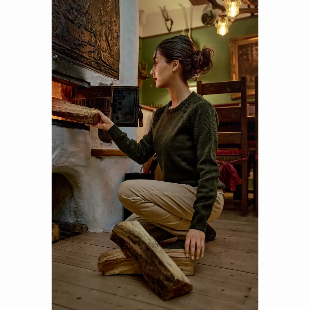 With a soft, next-to-skin feel, this temperature-regulating knitwear features raglan sleeves that allow unrestricted movement and rib-knit cuffs and hem that lock in heat and maintain the fit season after season. The neckline is lined with soft microsuede for enhanced comfort and a polished finish. Modern moss stitch detailing across the shoulders adds classic country style, while subtle branding completes this versatile women’s country pullover. Perfect for shoot days, country walks, and everyday wear, the Vinnie Merino Pullover combines classic elegance with practical outdoor performance.