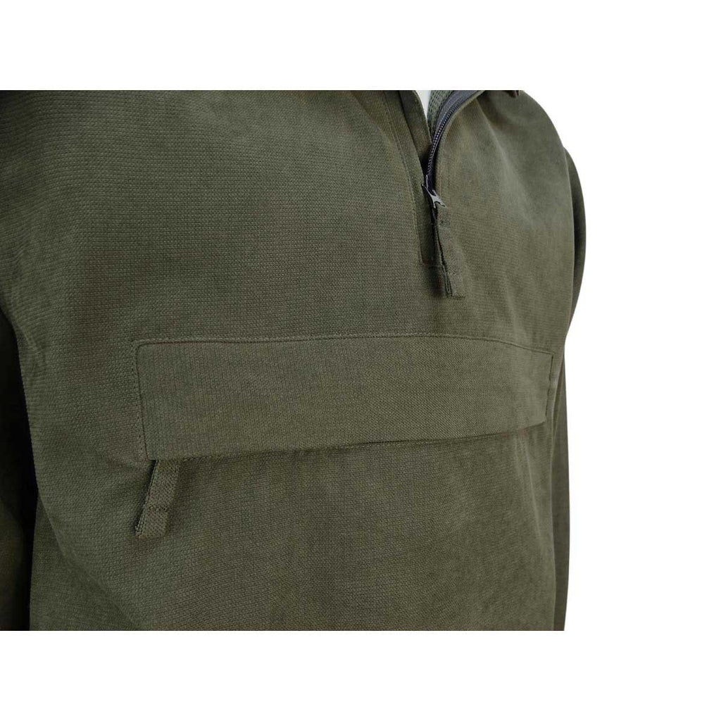 Hoggs of Fife Struther Waterproof Field Pro Smock Jacket is a very practical 3/4 length men's field jacket primarily designed for hunting  and shooting with an adjustable fleece lined hood for added comfort & protection. These stylish longer cut smocks are becoming increasingly popular with people who spend long periods of time outdoors in all weather. There is a large zipped front pocket specially designed for easy access to binoculars or maps as well as two side zipped pockets.