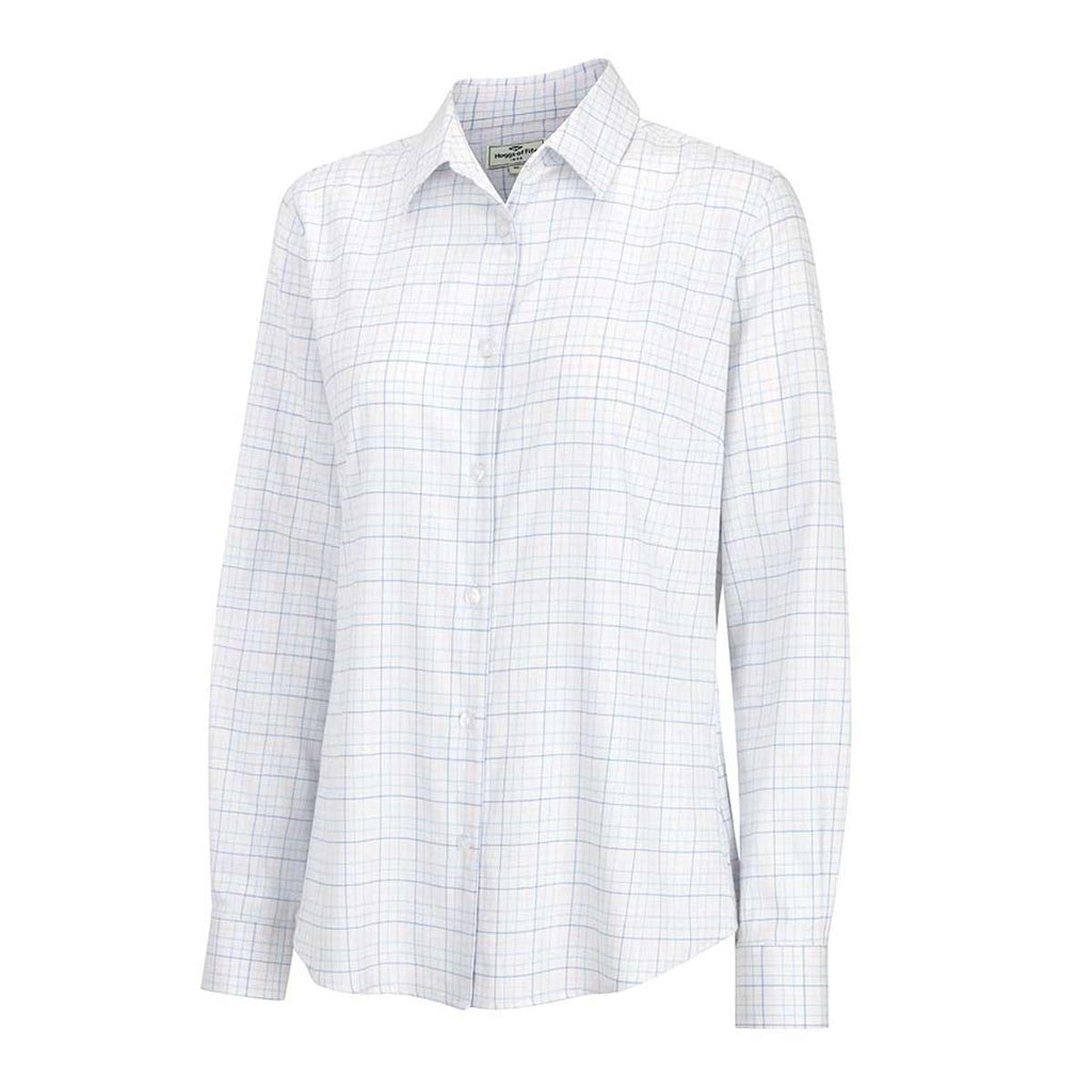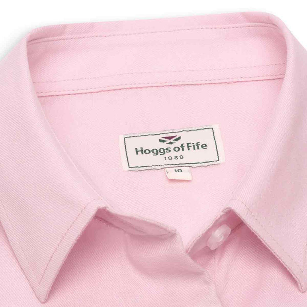 Hoggs of Fife Callie Ladies Twill Check Shirt is a very stylish fashionable ladies semi-fitted cotton country shirt with built in stretch for added freedom of movement. This lightweight breathable white cotton shirt has an easy care finish which is very versatile with an elegant subtle pink/pale blue woven check with tonal pearlized buttons.