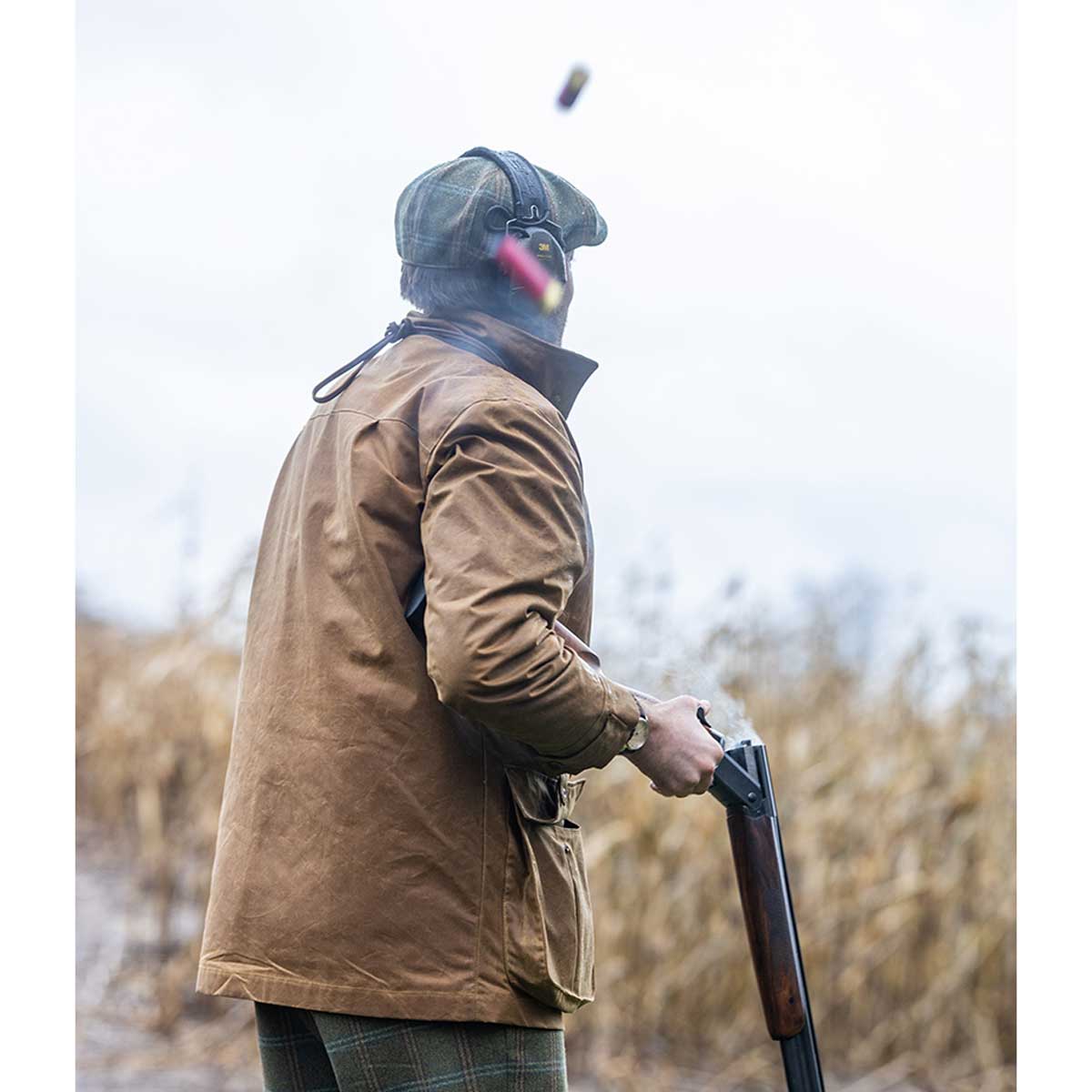 This unique antique styled waxed fabric has clean lines and is highly durable and weatherproof has two large front cartridge pockets fastened with a stud and flap closure and drain holes to keep the rain out and two handwarmer pockets with quick load straps to keep your pockets open when shooting for comfort in cold weather. There is a full front 2-way zip covered with a storm flap and adjustable cuffs to prevent water ingress. The stand up collar has a throat strap for added protection from chilly winds with a soft Loden Wool lining to keep you warm and comfortable.