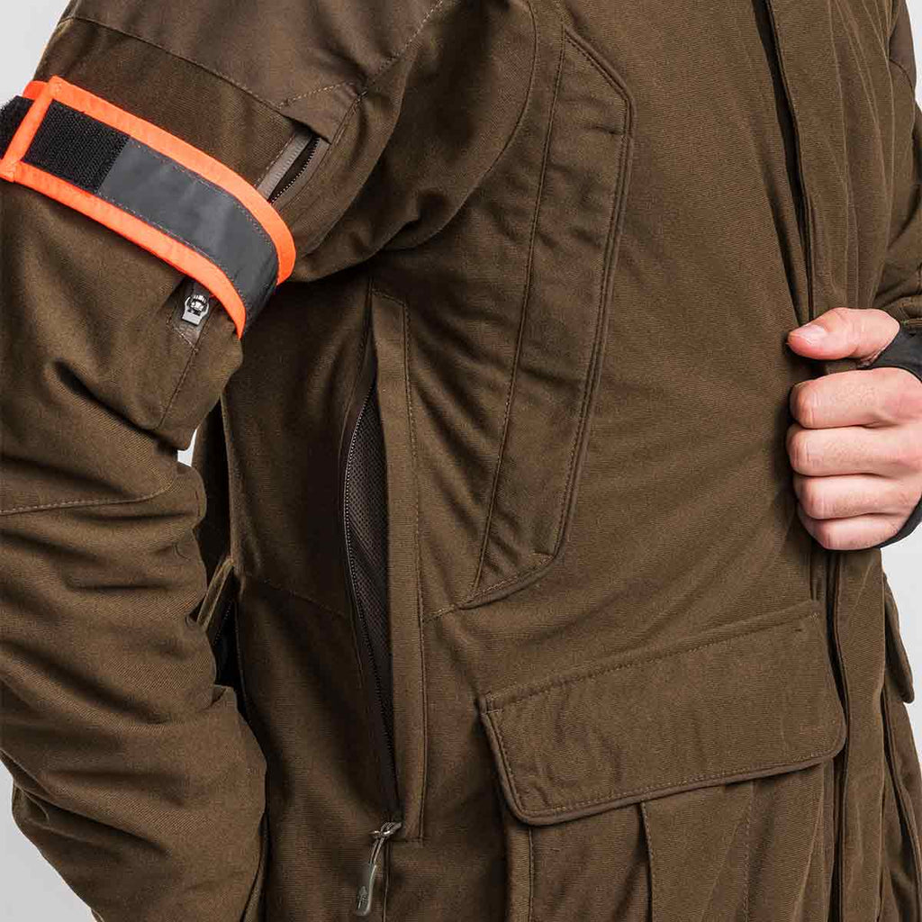 Lightly padded with Thermolite®, it provides excellent insulation without adding bulk, keeping you comfortable in cold conditions. The jacket is wind- and waterproof (12,000mm), with fully taped seams, and features a mesh lining with ventilated zippers that enhances breathability (30,000g/m²/24h), reduces condensation, and keeps you dry and comfortable during high-activity hunting.